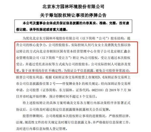 当日午间,东方园林披露临时停牌的正式公告,确认此次控制权可能变更的具体情况。