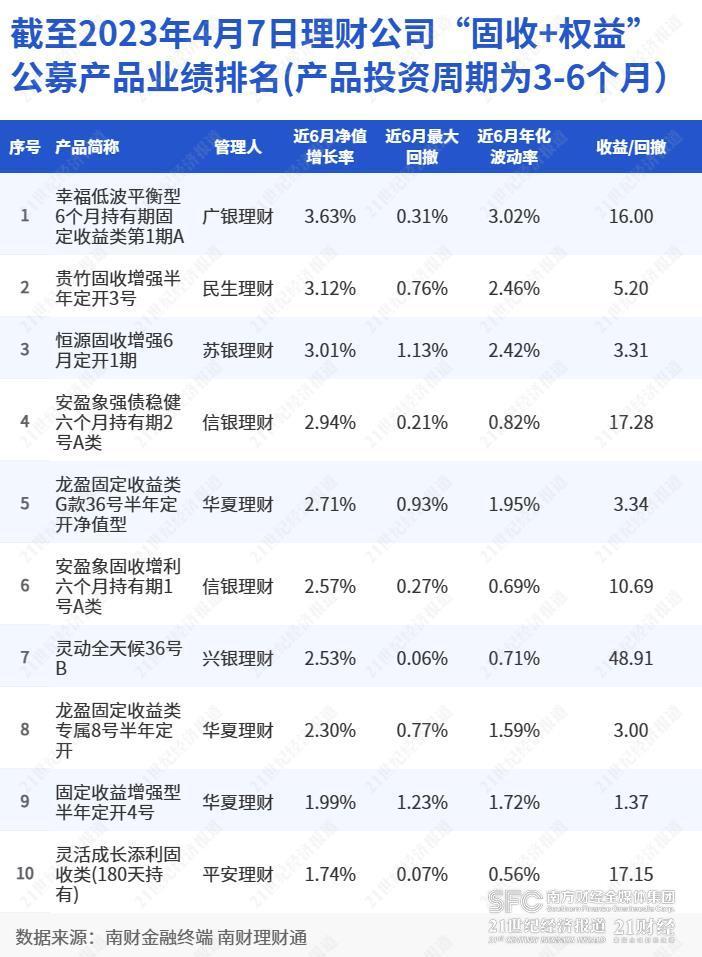 “固收+权益”理财近6月净值涨幅最高达3.63%!广银、民生、苏银产品跻身榜单前三丨机警理财日报-理财基金排行