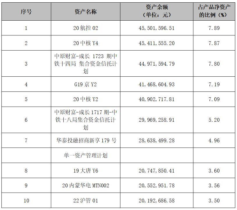 (2023年一季度末“招睿颐养丰润两年定开1号增强型固定收益类理财计划”前十项资产明细,数据来源:招银理财)