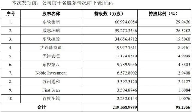 首先,东软集团为公司第一大股东,本次新股发行前的持股比例接近30%。