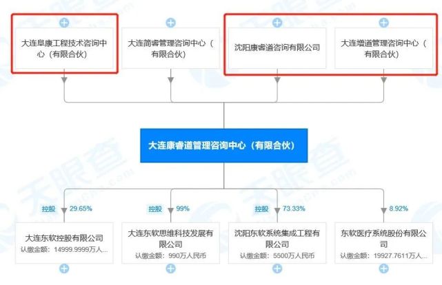 东软集团、东软控股、大连康睿道分别持有东软医疗29.94%、15.51%和8.92%股权。