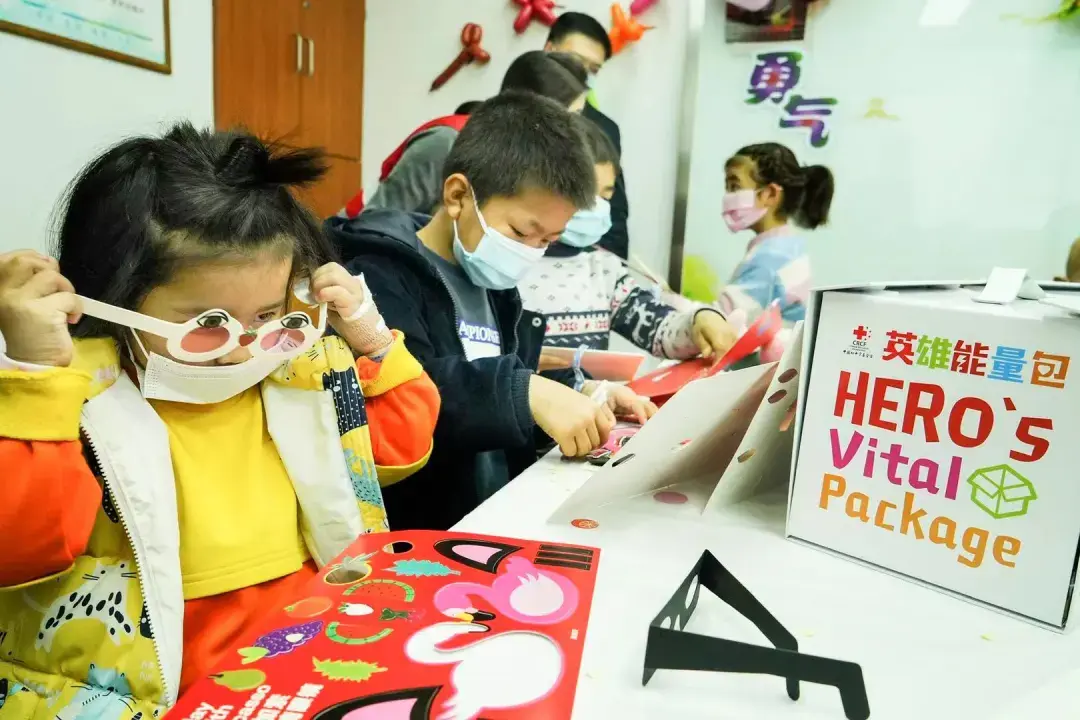 ▲患儿积极参与“心情眼镜”主题艺术探访活动