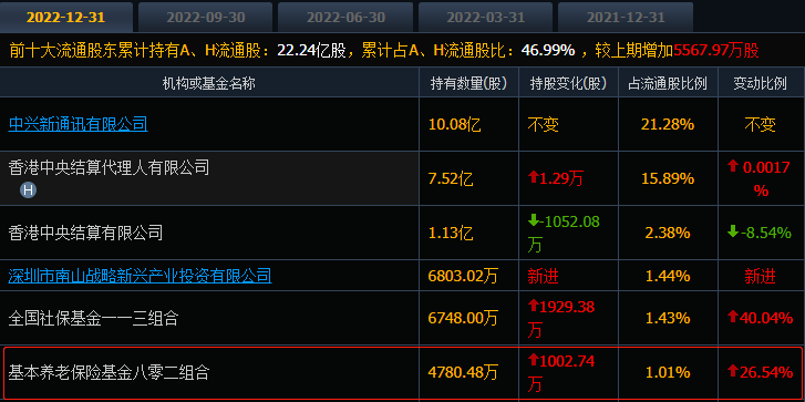 ,养老金802组合在去年第四季度新进了3336.98万股,占流通股比例为0.07%;