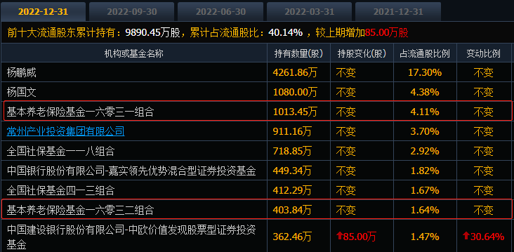 其中,养老金1003组合在去年四季度减仓80.28万股,目前总持股数为3742万股,养老金1202组合新进956.29万股;