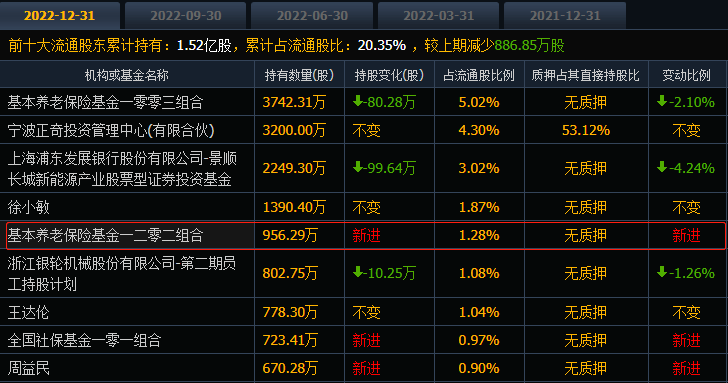 ,养老金802组合在去年四季度增仓1002.74万股,持股比例增加26.54%,目前总持有4780.48万股,占流通股比例为1.01%;