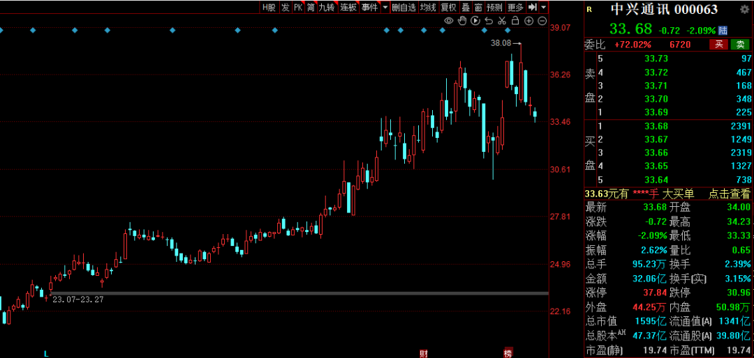 在6G、网络安全、边缘计算等热门概念的刺激下,2023年以来,中兴通讯走出一轮震荡上涨行情,1月份至今股价累计上涨30.24%;