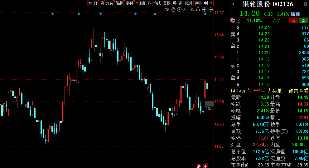 银轮股份:养老金1003组合、1202组合合计持股4698万股,占流通股比例为6.31%;