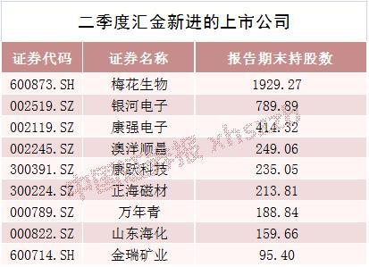 汇金公司持股方面,Wind数据显示,截至目前,共有219家上市公司披露了汇金持股情况。新进个股方面,汇金新进个股数量9只,包括梅花生物、银河电子、康强电子等,1家公司被减持。
