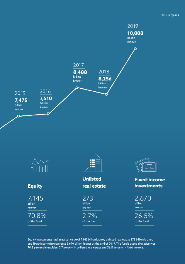 一方面节省支出,另一方面则进行可持续投资。作为74个国家/地区约9000家公司的长期投资者,它的投资具有非常长远的前景,使其能够在短期内应对价值的大幅波动。目标就是以适度的风险产生尽可能高的回报,从而使基金得以成长和承受。