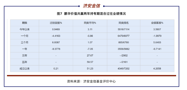 鹏华价值共赢两年持有期混合1年过往回报为-9.38%,低于行业-7.05%的水平,同类排名3556/5662。