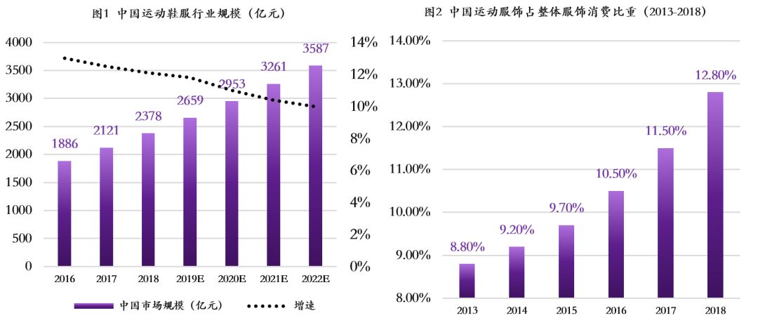 根据欧瑞数据,2018年国内运动鞋服零售总额已达到2378亿元,同比增速为12.5%,在服装类子行业中表现极为突出。未来伴随国民收入水平的提高和年轻消费群体对运动鞋服的更强偏好将推动行业消费的价量齐升,运动鞋服行业的高增速将在中长期内持续。