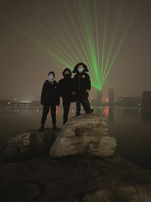 今年回老家过年时,李晨带着妻子和两个儿子去了市里的人民公园,孩子们玩得很开心,他们还在湖边拍了照片作为纪念。当时李晨带着两个儿子列队站在一块巨石上,背湖而立,湖水清澈、静谧,远处广场喷泉溅起的水柱