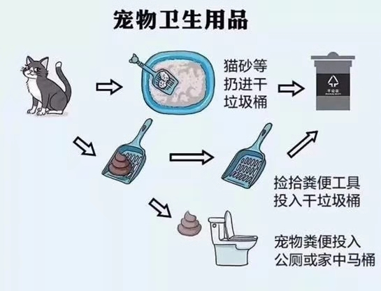 其次,宠物的粪便,猫的猫砂以及猫的粪便,它们其实也不属于生活垃圾,其实和人的粪便是一个性质的。所以,理论上是要冲入马桶当中的。