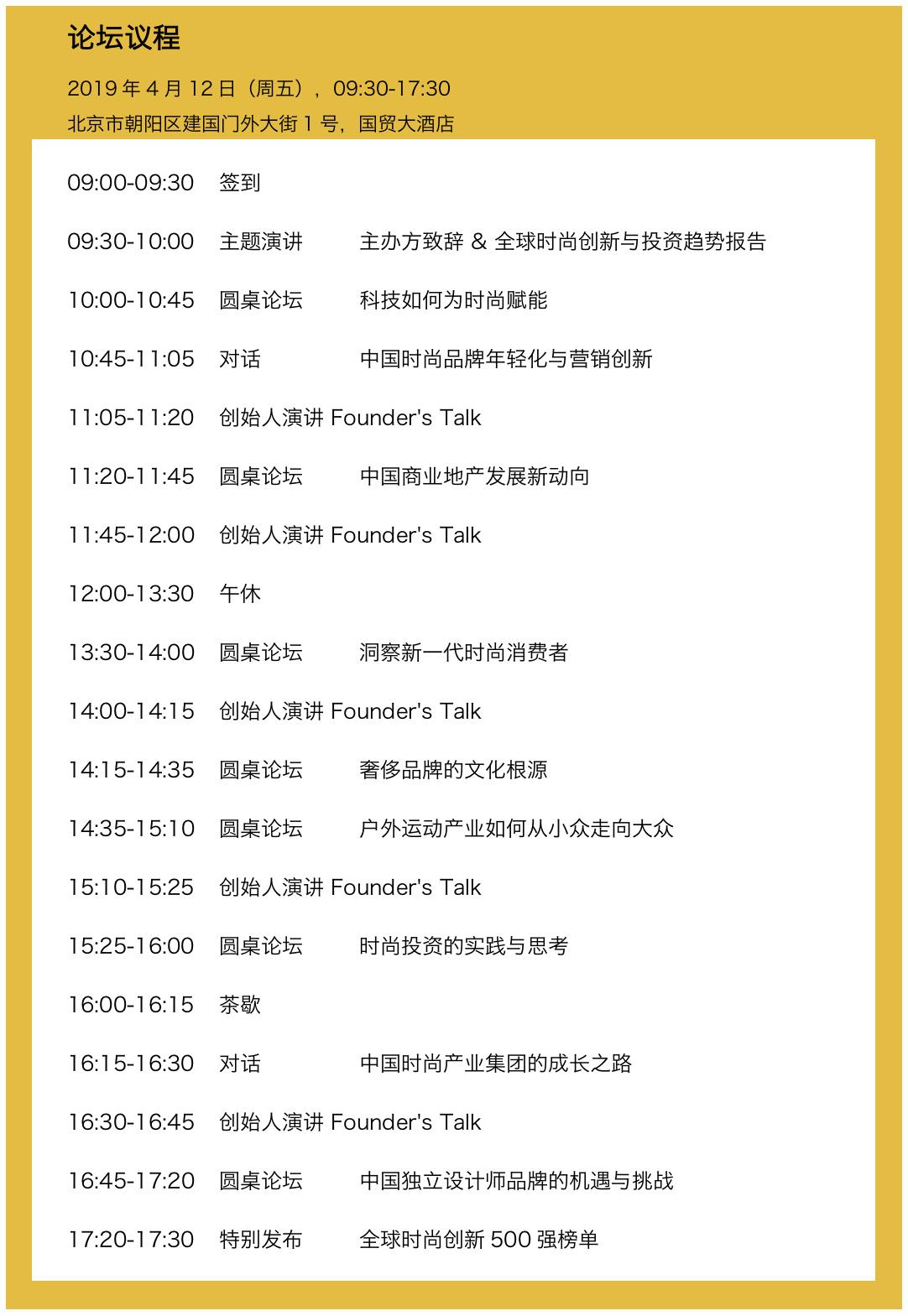 通过对谈、圆桌讨论和创始人演讲等环节,这些光彩熠熠的开拓者和决策者将亲身讲述品牌创业历程、解析投资逻辑,围绕中国时尚产业升级、新一代品牌塑造、消费者洞察、科技与时尚、商业地产与零售新概念等主题板块展开讨论。