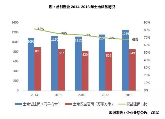 2018年年报提出确保2019年实现800亿以上合约销售,较2017年展望2019年实现进入千亿房企行列,目标有所降低。在目前千亿正在成为规模房企的标配,且市场集中度进一步提升的情况下,想要保持目前位置不掉队,首创的总土储规模还需增加,且需进一步优化,以支持后续的快速发展。