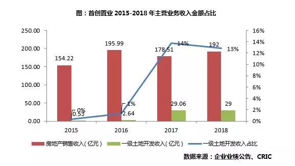 房地产销售收入192亿元,同比上升7个百分点。一级土地开发在2017年出现爆发性增长之后进入平稳期,收入为29亿,与去年持平,全年营业收入的增长主要来自房地产销售。