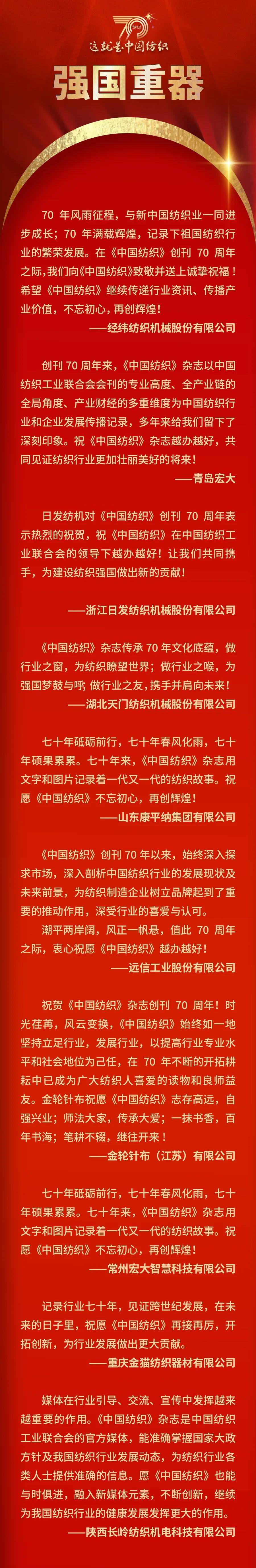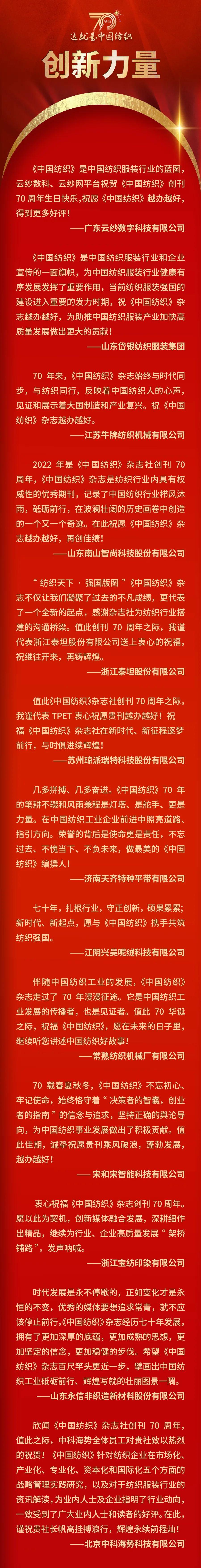 在《中国纺织》杂志创刊70年之际,“这就是中国纺织”专题报道采访了近70家企业,他们聚是一团火,散是满天星。以上企业是其中的部分代表,更多的深度内容在之前的专题中已一一呈现。