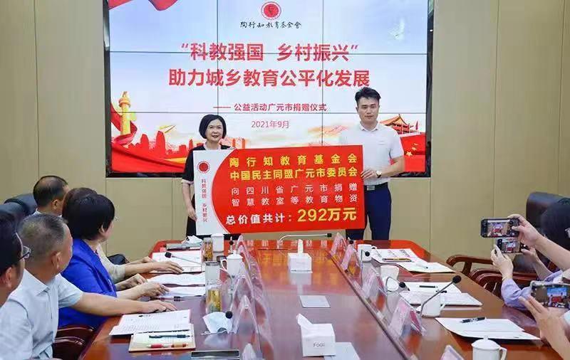 “科教强国 乡村振兴”公益助学活动是由陶行知教育基金会与各省相关部门在全国开展的一项精准助学公益捐赠活动。经民盟广元市委积极协调,为助力广元城乡教育公平化、均衡化发展,提高农村教育质量,全面改善农村教育水平,陶行知教育基金会向广元市昭化区、利州区、朝天区的91所学校捐赠了价值292万元的信息化教学设备。