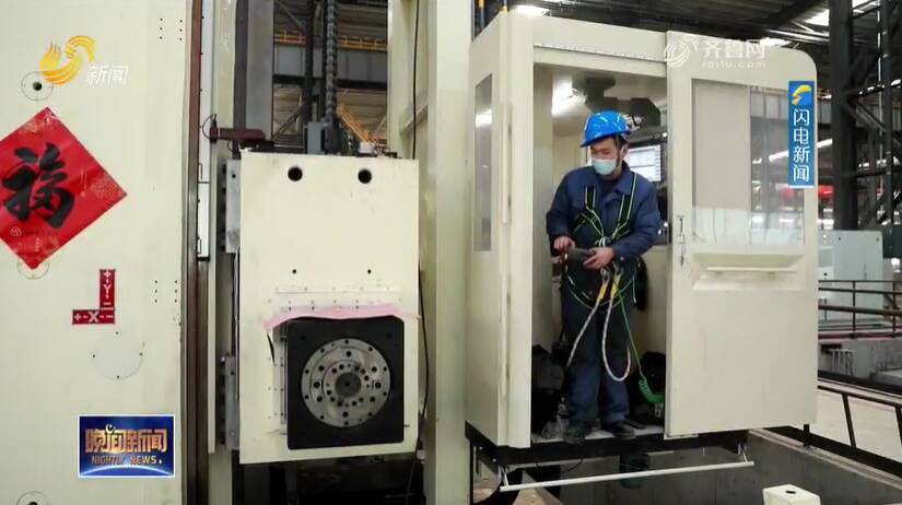 山东金雷新能源重装有限公司董事长王瑞广说:“这个项目呢主要生产海上风机大型核心部件。如这个风机主轴、连体轴承座、轮毂、底座等等,尤其是以这个风机主轴要求比较高,他起了一个支撑、连接和传递扭距的作用,他这个有些部位的加工精度能达到1%个毫米。”