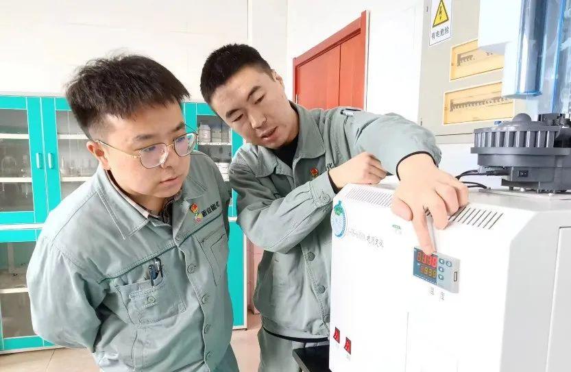 新业能化质检中心班长石万荣(右一)在培训公司员工