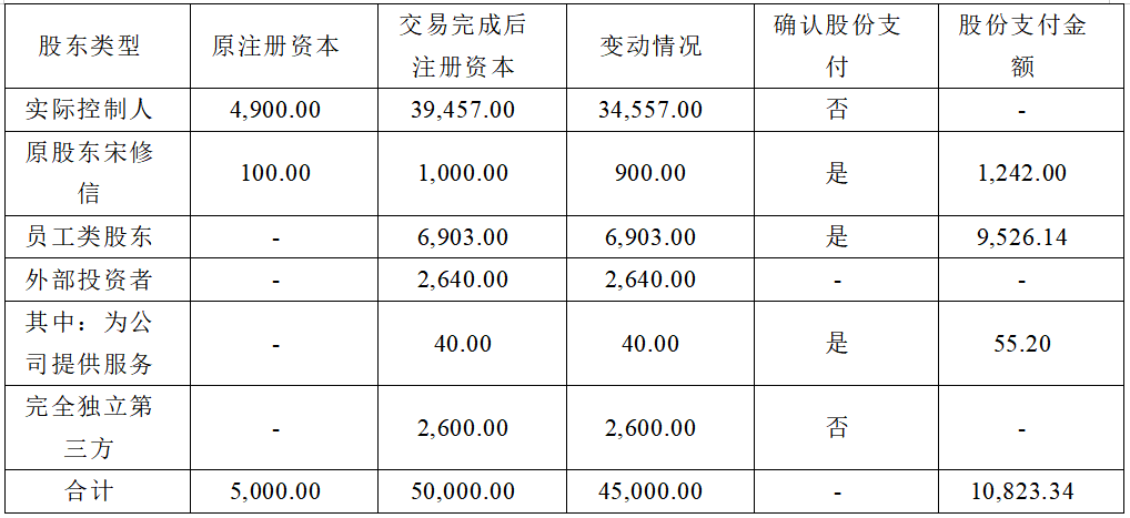 由上表可知,公司对原股东宋修信、员工类股东及部分外部投资者按照公司每1元注册资本的公允价值与增资及转让价格的差额计提了股份支付费用,具体说明如下: