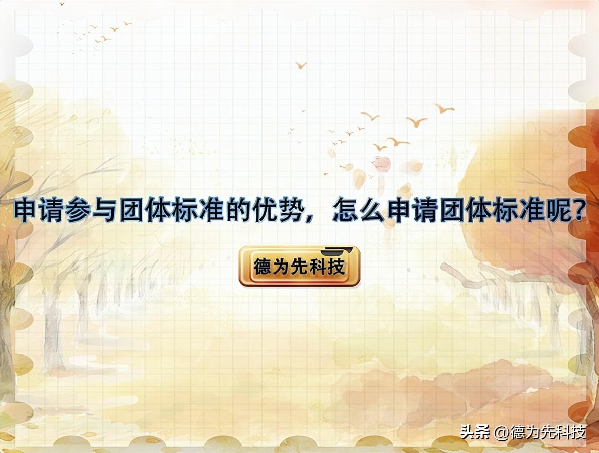 【德为先科技】申请参与团体标准的优势,怎么申请团体标准呢?