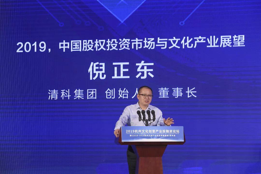 清科集团创始人、董事长倪正东发表了题为《2019,中国股权投资市场与文化产业展望》的主题演讲。他谈到当前文创产业整体形态发生变化,更多新生一代的涌现为文创行业注入源源生机。杭州是一个充满机遇和不断发展变化的城市,相信在未来十年内,杭州文化产业凭借一大批优秀企业的力量,一定会大有发展,中国文化产业也一定会更加繁荣兴旺。