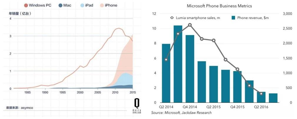 图7 各类电子产品的销量变迁和微软手机业务发展历程