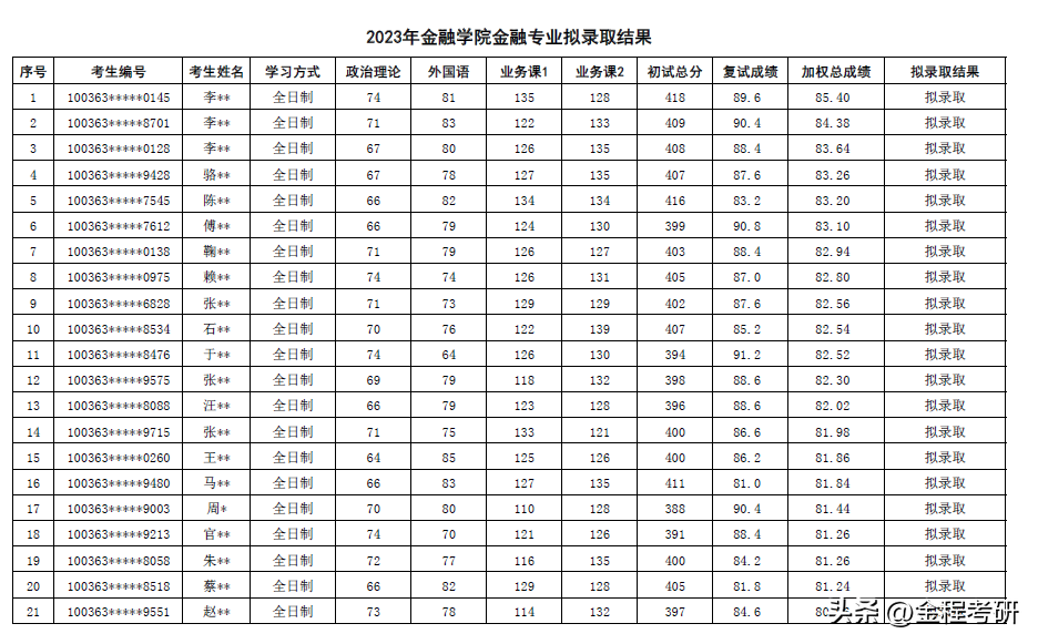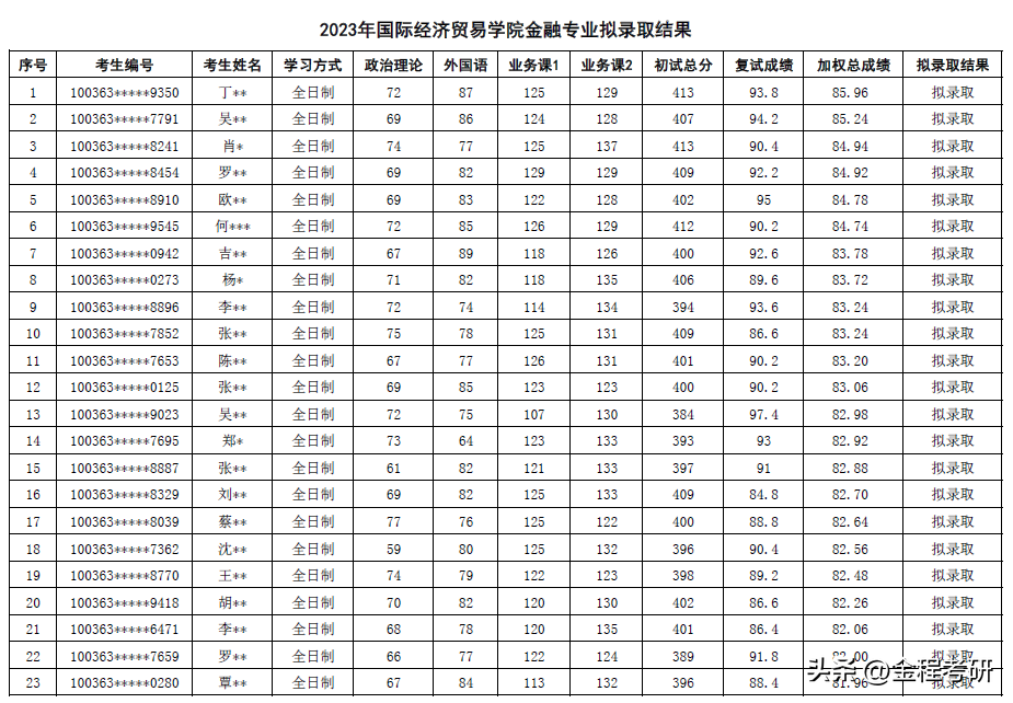 对外经济贸易大学国际经济贸易学院和金融学院发布了2023年金融专硕拟录取名单,2023贸大金融硕士国贸学院