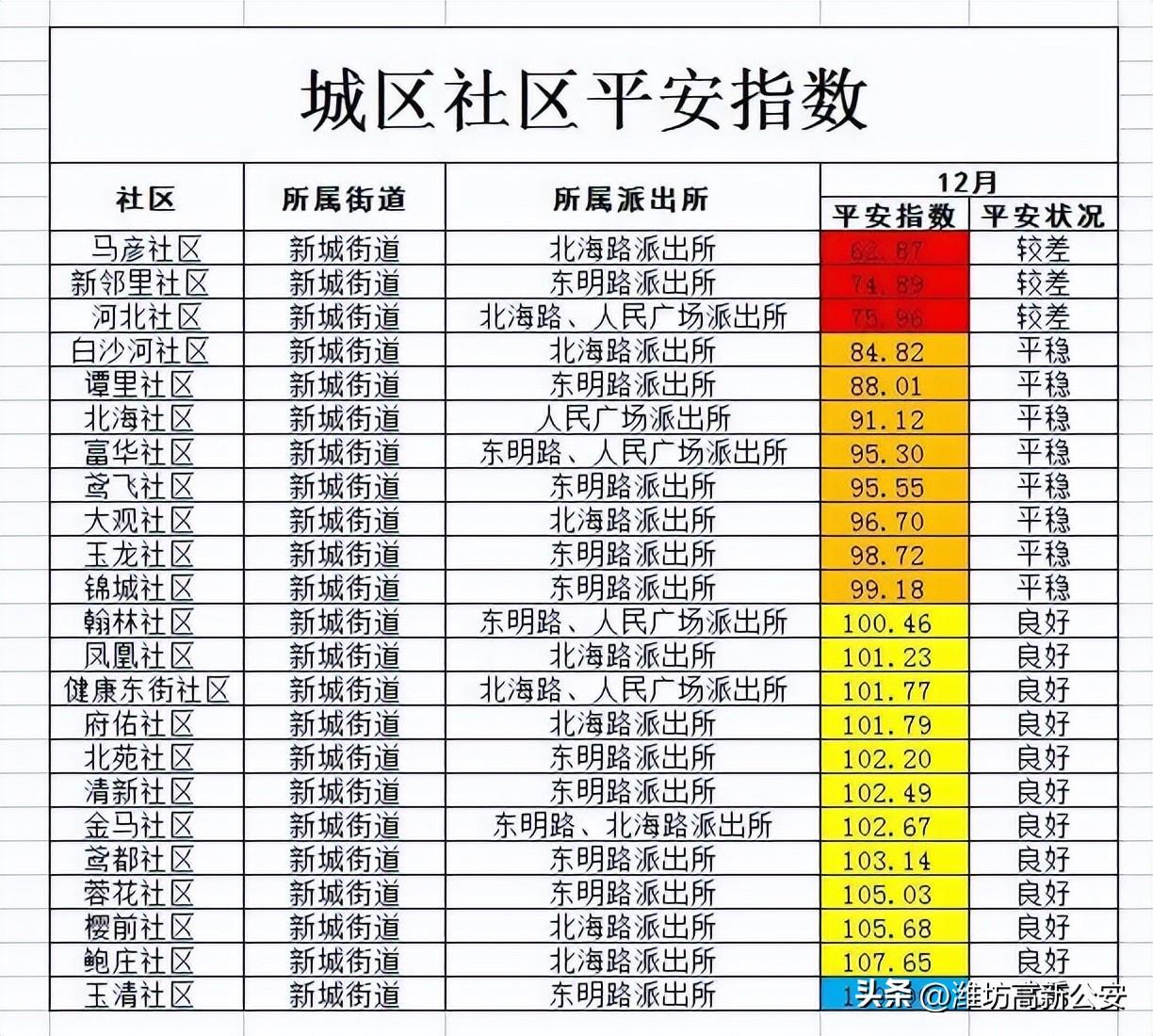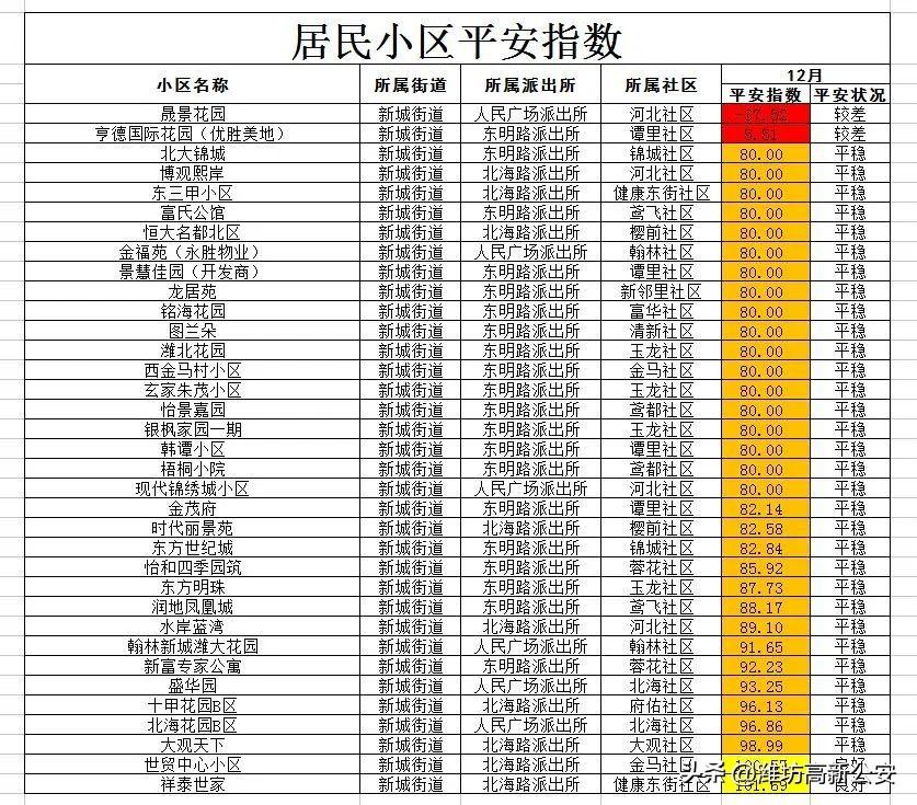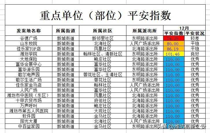 【把平安带回家】潍坊高新区:12月份平安指数发布了!-股票资讯乙卓信.宝挺好