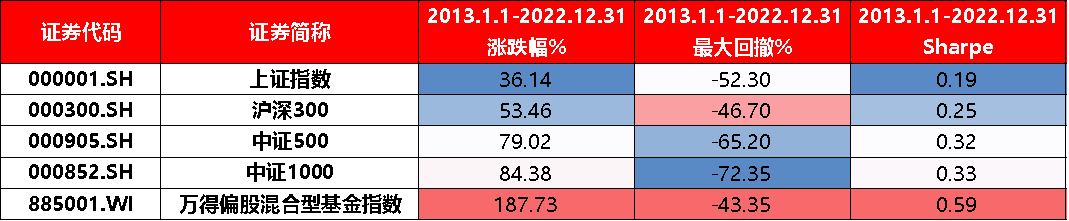 各指数近10年风险收益情况