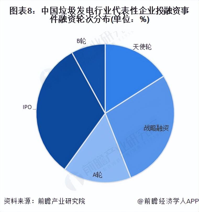 从中国垃圾发电行业投融资事件汇总中可以看出,早年间垃圾发电行业的融资事件类型主要集中在战略融资及A轮融资中,而近两年这些企业发展到一定规模,便开始通过IPO形式获得融资。