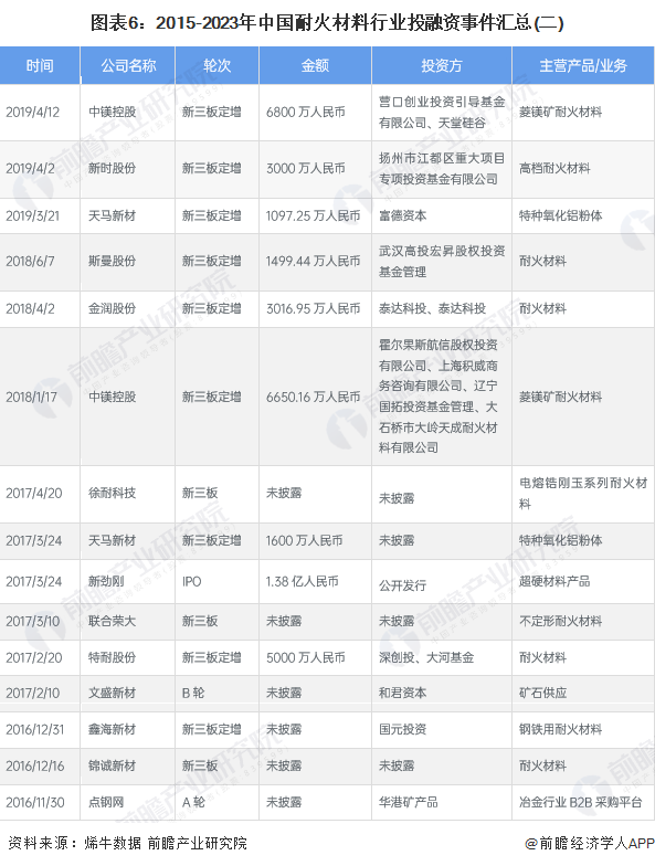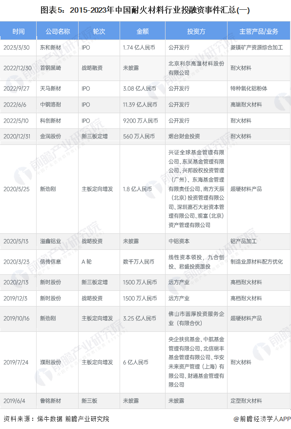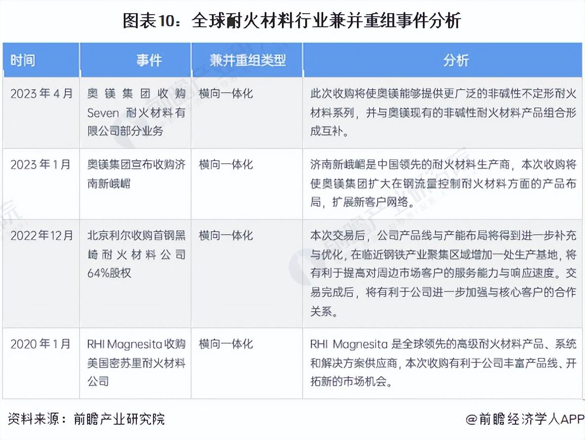 ——原标题:【投资视角】启示2023:中国耐火材料行业投融资及兼并重组分析(附投融资汇总和兼并重组等)