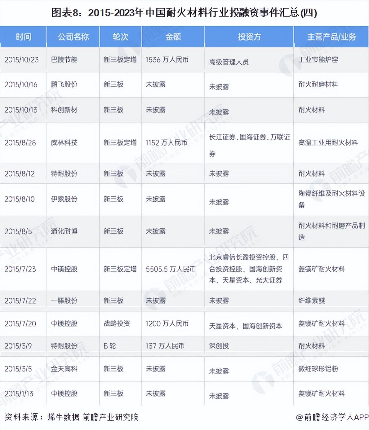 【投资视角】启示2023:中国耐火材料行业投融资及兼并重组分析-北京利尔耐火材料有限公司