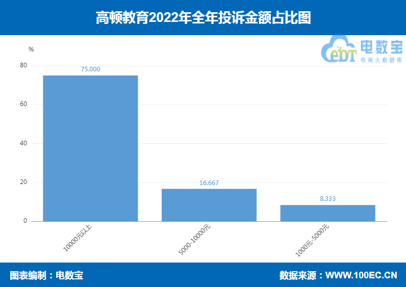 据网经社“电数宝”大数据库显示,用户投诉“高顿教育”的消费金额主要在10000元以上、5000-10000元、1000-5000元区间。