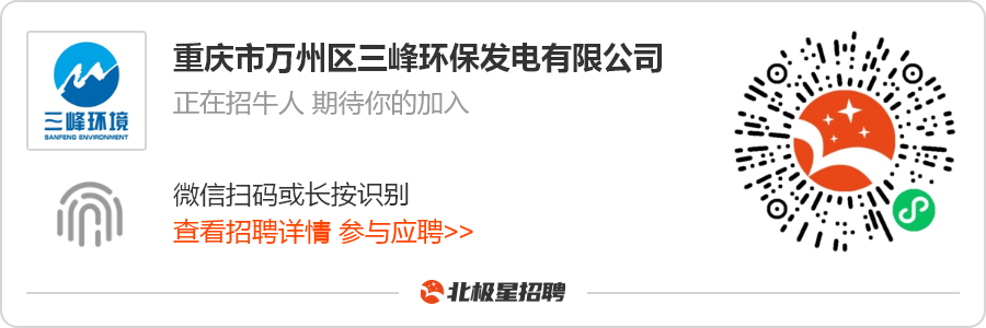 如果你有相关的工作经验和管理技能,且对环保事业充满热情,那么这个职位可能适合你。该公司提供有竞争力的薪酬和福利,同时还为员工提供良好的职业发展和晋升空间。如果你想成为这个领域的专家,加入重庆市万州区三峰环保发电有限公司,与优秀的团队一起推动环保事业的发展!