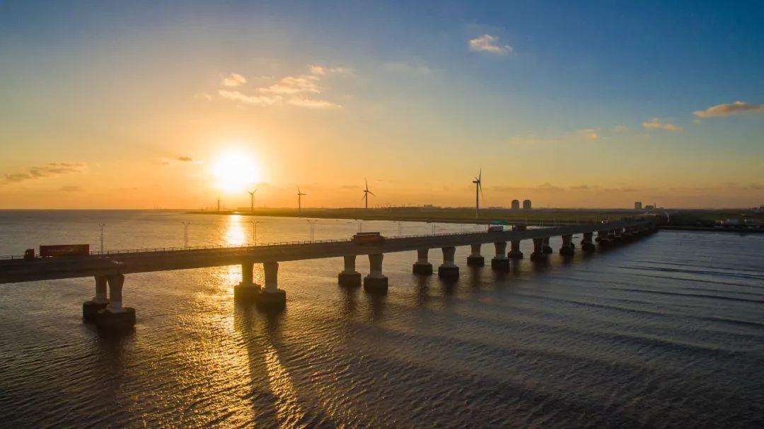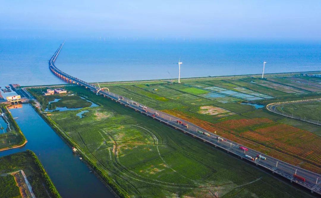 全长32.5公里的东海大桥,被誉为中国跨海第一桥,一头挑起“东海明珠”洋山岛,一头连接芦潮港,宛如海面上的一道长虹,驱车到海塘边,凭栏听海声,看大国工程完美融入诗意海景。
